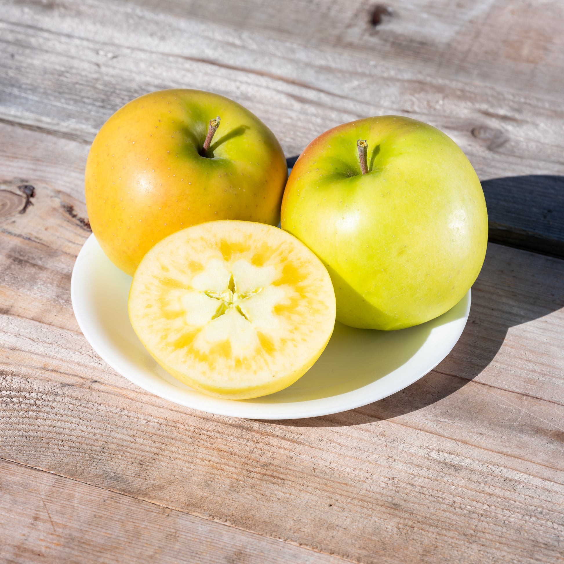 地元弘前大学の塩崎先生とその生徒たちが思いを込めて育成した品種です。名前の由来は「親”孝行”」「”高校”合格」「煌々」など、食べる人の想いをのせて、という意味が込められているそうです。県内でも栽培している面積はまだまだ少なく、まさに幻のりんご。弘大1号とふじというどちらも赤い品種を掛け合わせたにもかかわらず、色は黄色で、黄色のりんごには珍しく、蜜が入りやすい品種です。黄色い品種特有の芳醇な甘さと、赤いりんごのシャキッとした食感が絶妙にマッチした美味しい”こうこう”を是非とも召し上がれ!